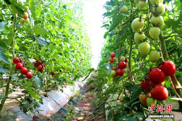 11月初,甘肃省武威市民勤县用有机肥固沙培肥技术,温室作物硕果盈枝。马爱彬 摄