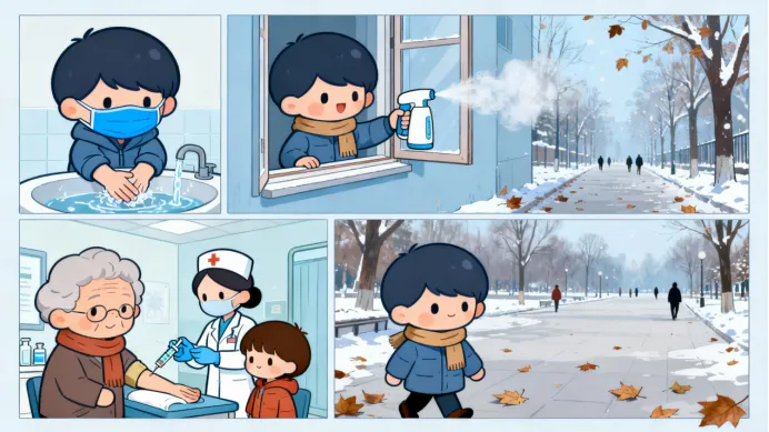 第一招戴对口罩+勤洗手:在密闭场所戴医用外科口罩(能挡飞沫和部分气溶胶),回家用“七步洗手法”洗手20秒以上,免洗洗手液选含氯的(流感病毒对含氯消毒剂敏感);